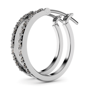 14kt White gold earrings with thirty four round brilliant cut natural white diamonds gauging 1.60 X 1.55mm(avg.). Total carat weight is 0.58ct.tw., clarity I1, Colour G-H and cut Medium-Good. Total weight of the earrings is 4.99 grams.