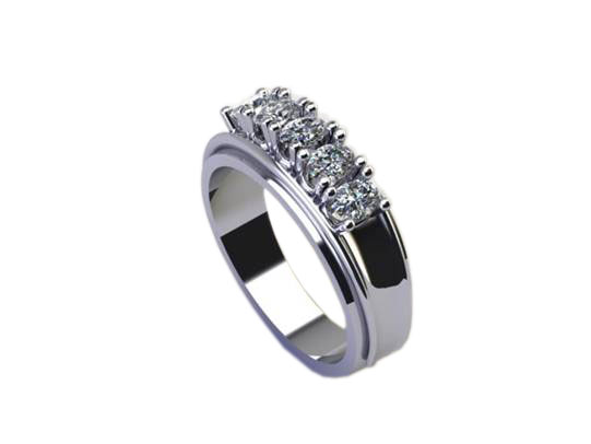 14kt white gold prong set diamond ring: containing five round brilliant cut diamonds with a carat weight of 0.50pts. Clarity: SI1. Colour: G. Cut: Very Good.